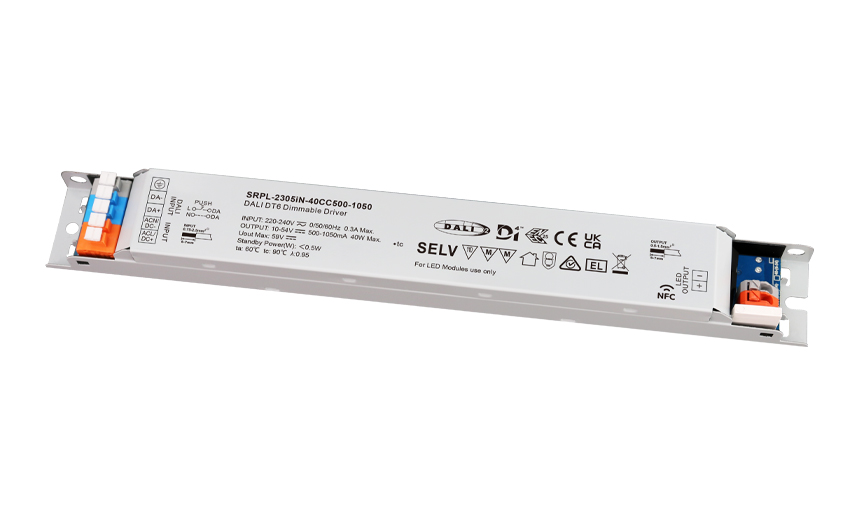 | DALI | 1通道 | 10-54V | 500-1050mA via NFC setting; 最低設置電流檔位間隔低至 0.1mA | 220-240VAC | 最大40W | >0.95 | 243*30*21 mm(長*寬*高) |
