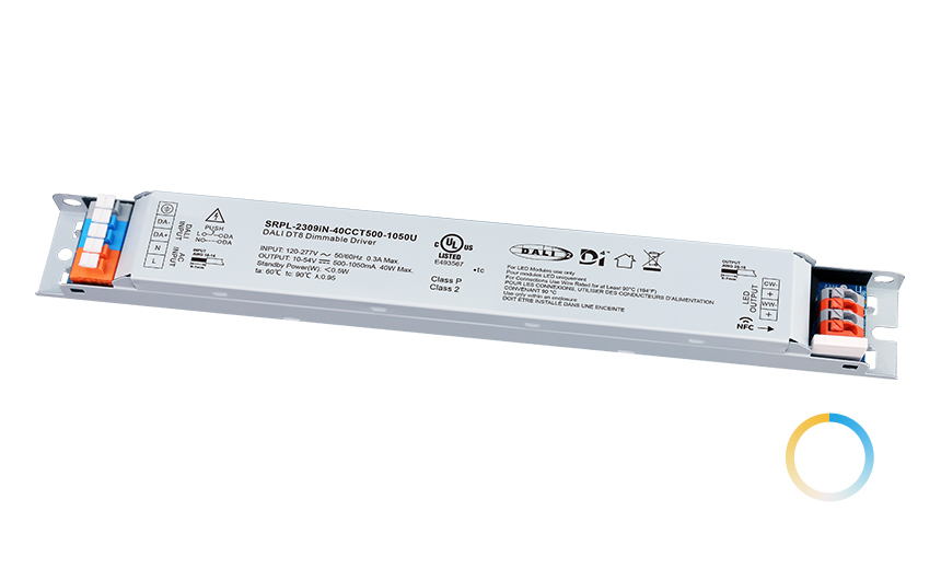 LED調(diào)光電源,最大輸出功率40W,輸入電壓120-277V,內(nèi)置DALI-2接口,DALI DT8設(shè)備