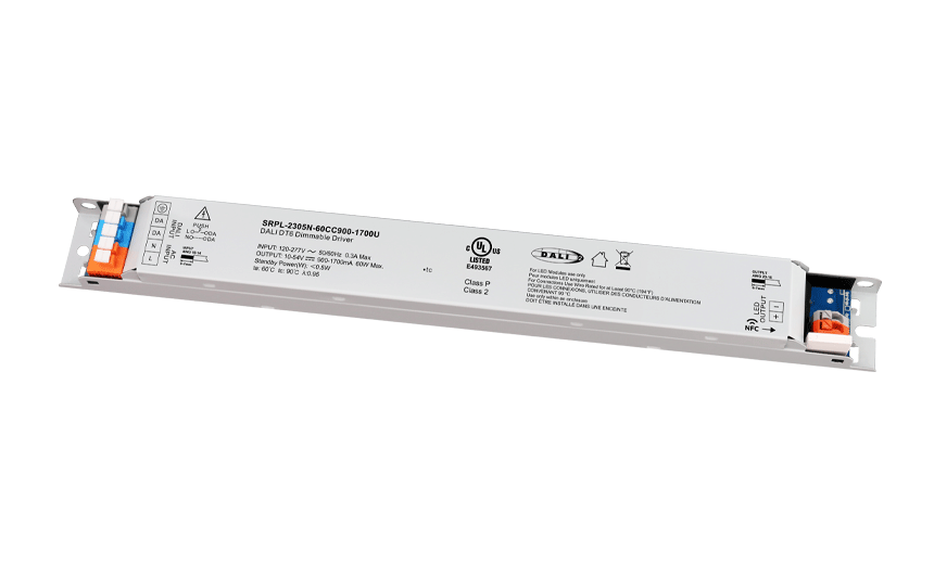 | DALI | 1通道 | 10-54V | 900-1700mA via NFC setting; 最低設置電流檔位間隔低至 0.1mA | 120-277VAC | 最大60W | >0.95 | 284*30*21mm (長*寬*高) |
